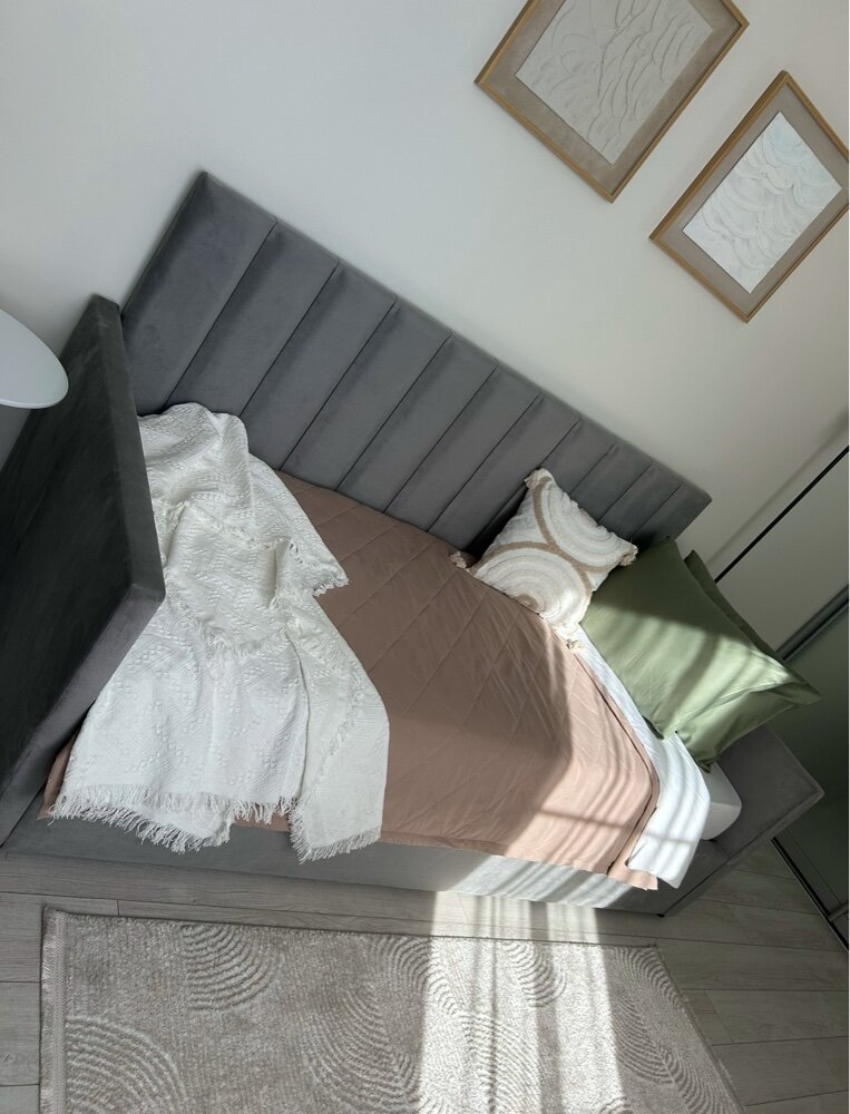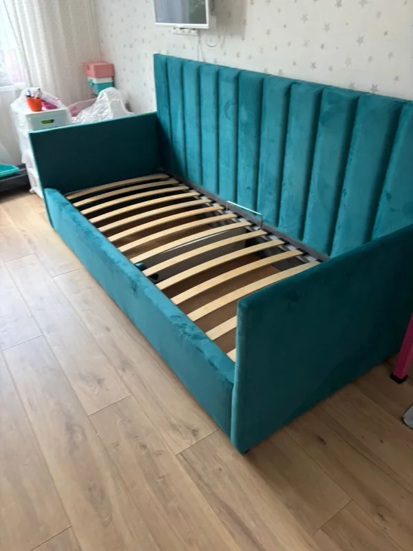 1-спальная кровать имеет удобный подъемный механизм с вместительным местом для хранения пастельного белья или других вещей. Кровать-тахта с надежной ортопедической решеткой выдерживает вес до 120 кг, что делает ее универсальной для сна ребенка или взрослого человека. Кровать с высоким изголовьем и мягкой обивкой в современном дизайне впишется в любой интерьер комнаты, добавляя ей стиля и комфорта.