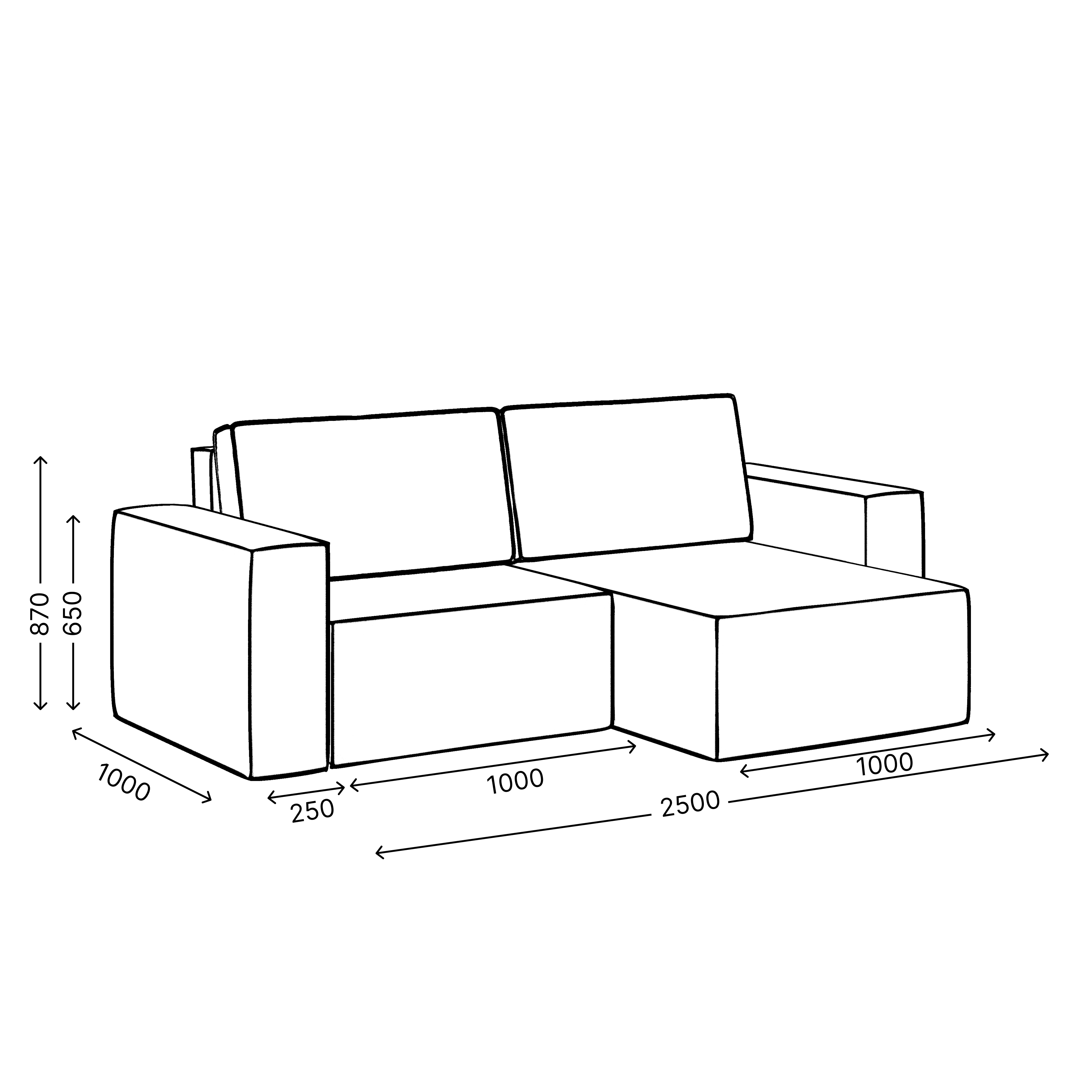 Диван имеет размеры 250х100х87 см, что позволяет разместить его даже в небольших помещениях. Вес дивана составляет всего 140 кг, что делает его легким в перемещении и установке.