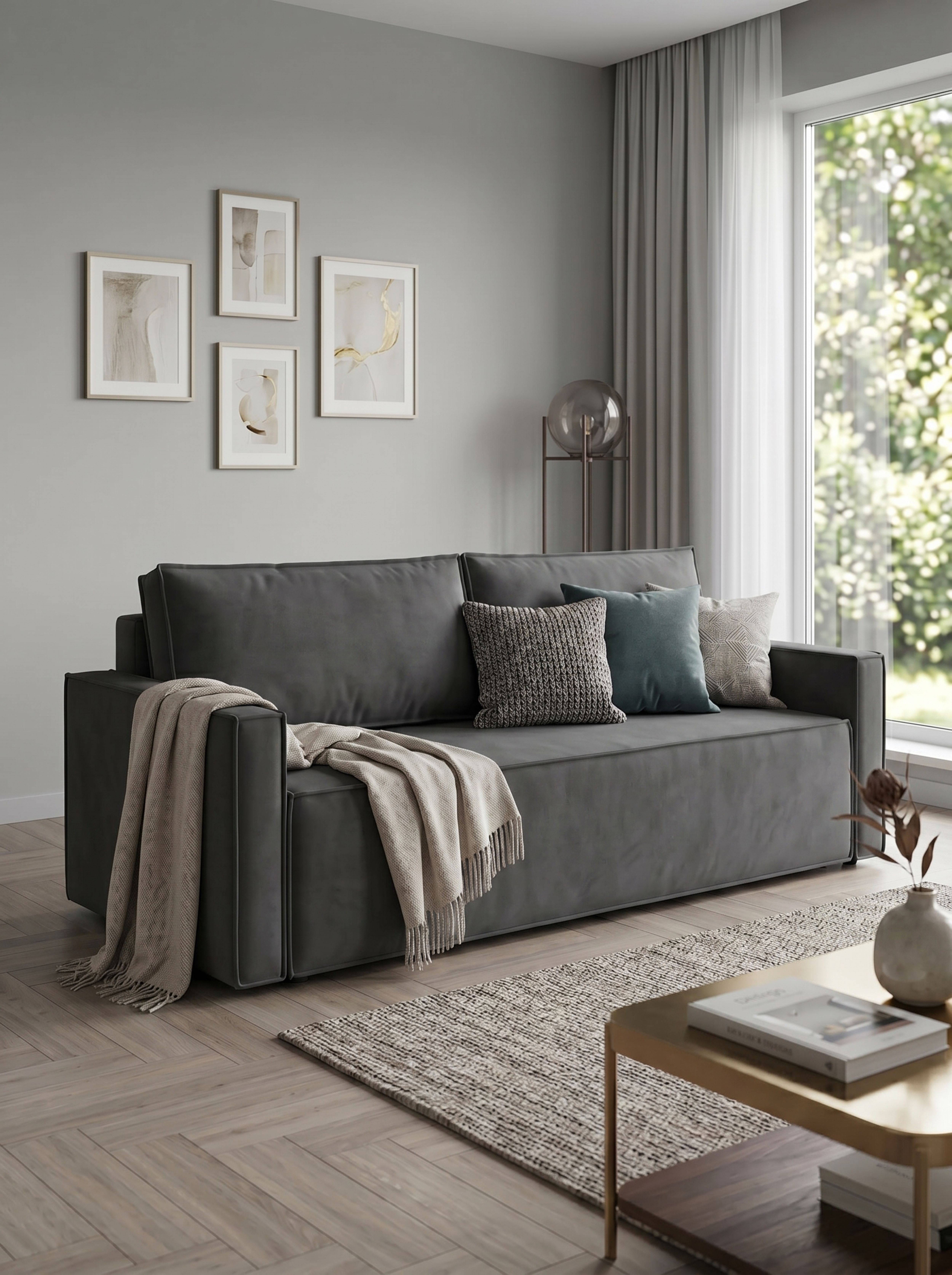 Диван оснащен удобным механизмом трансформации еврокнижка, который позволяет быстро и легко превратить его в просторное спальное место размером 190х145 см. Это особенно актуально для тех, кто ценит комфорт и функциональность в одном предмете мебели.