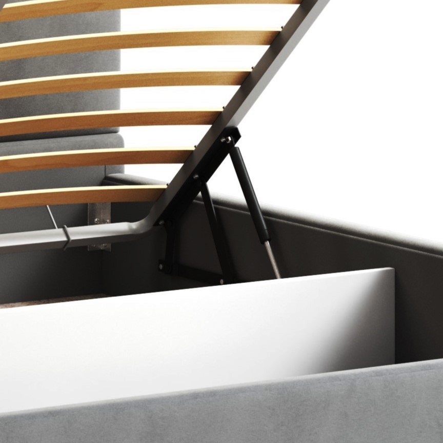 Особенностью данной модели является наличие подъемного механизма и вместительного бельевого ящика. Это обеспечивает дополнительное пространство для хранения постельного белья и других вещей, а также экономит место в спальне.