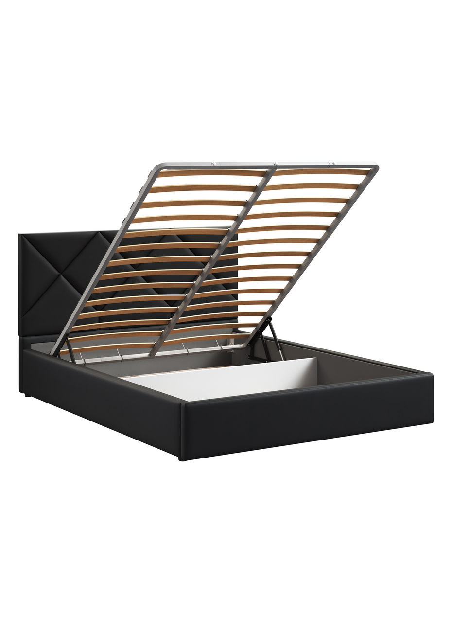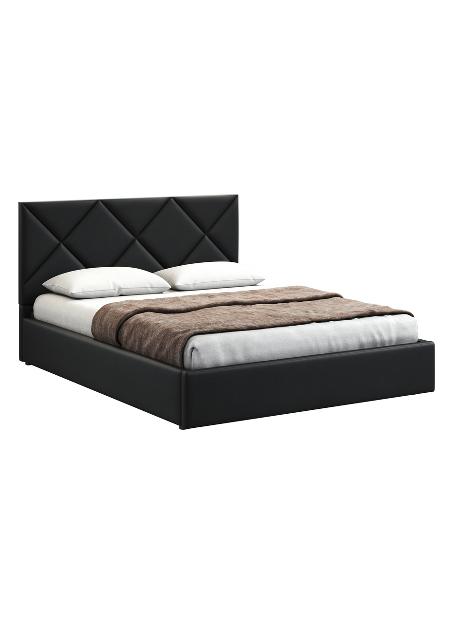 Кровать Венера-6 выполнена в лаконичном стиле. Двуспальная модель оборудована высокой спинкой с ромбовидным рисунком, подиумным корпусом, обитым искусственной кожей и ортопедическим основанием. Дополнительно кровать оснащена подъемным механизмом, матрас в комплект не входит. Двуспальная кровать Венера украсит самый притязательный интерьер.