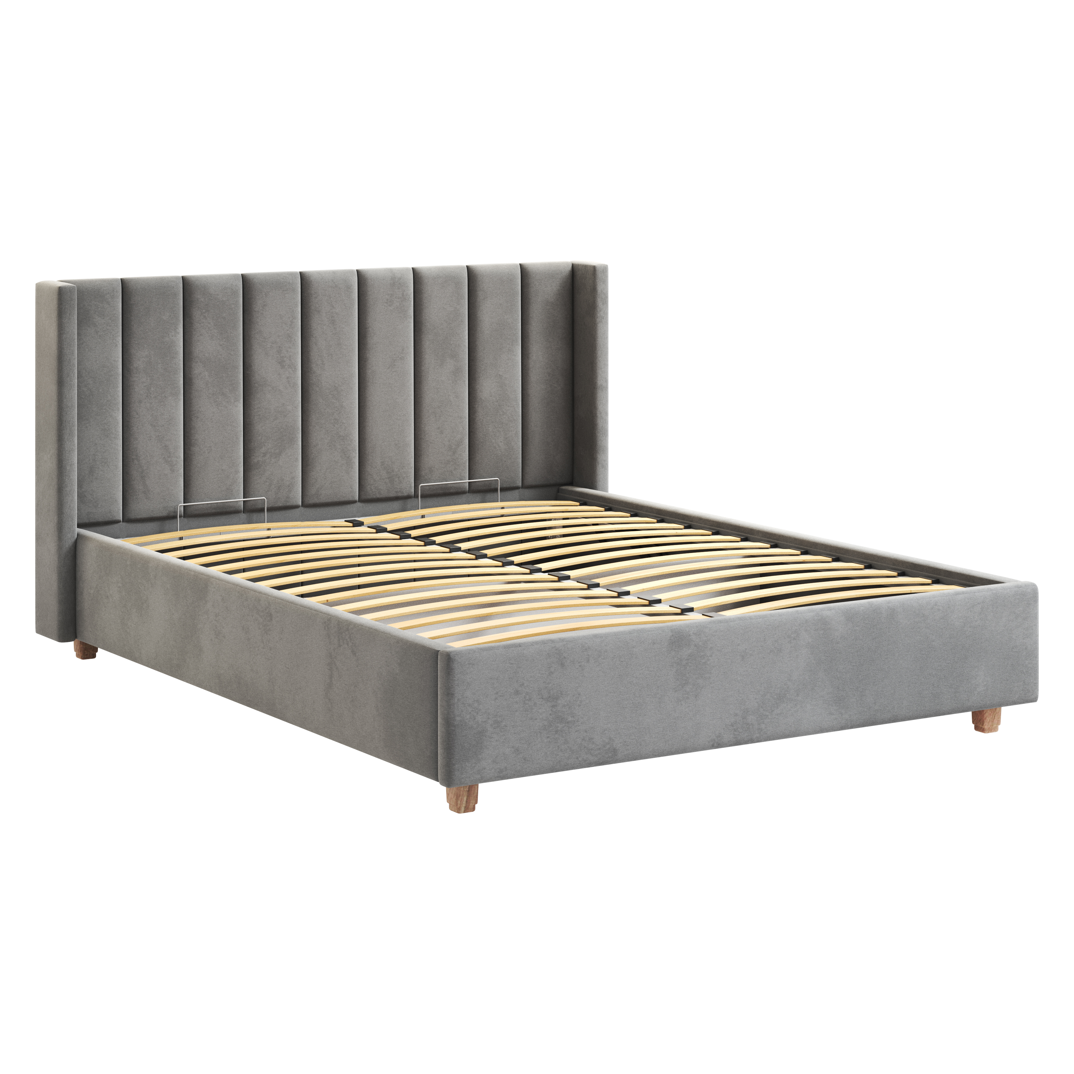 Кровать выполнена в синем велюре (Denim), который придает ей стильный и современный вид. Обивка из искусственного велюра приятна на ощупь и легко чистится. Каркас кровати изготовлен из ЛДСП, что гарантирует прочность и долговечность изделия.