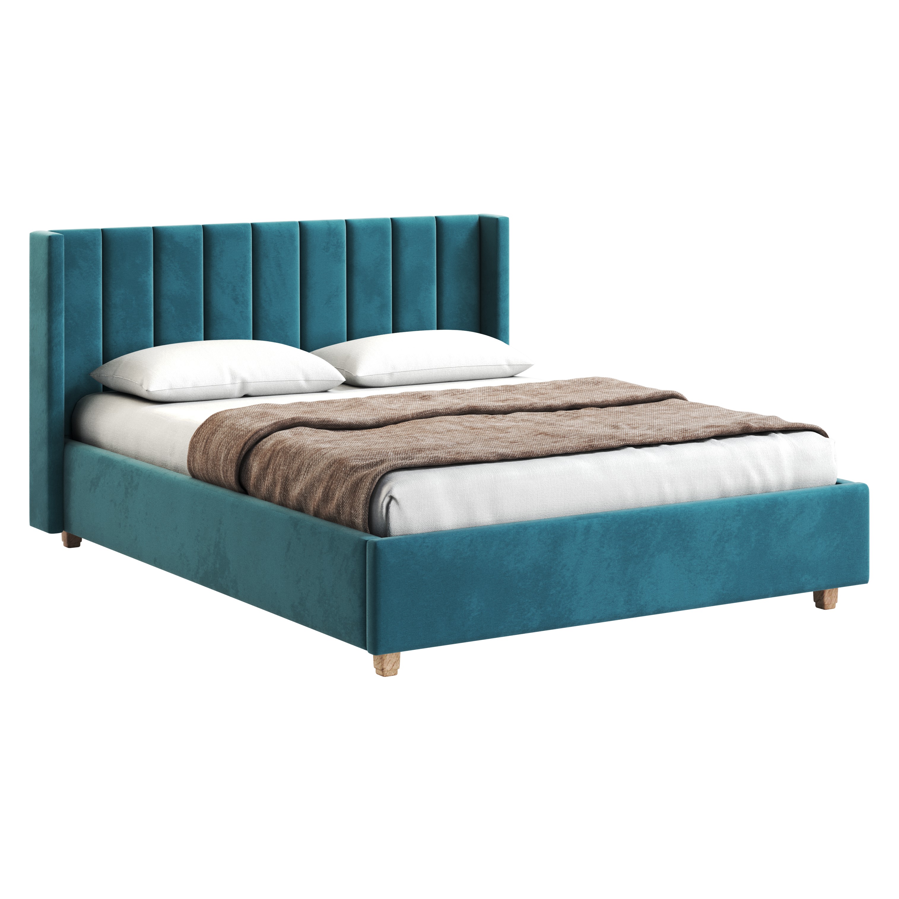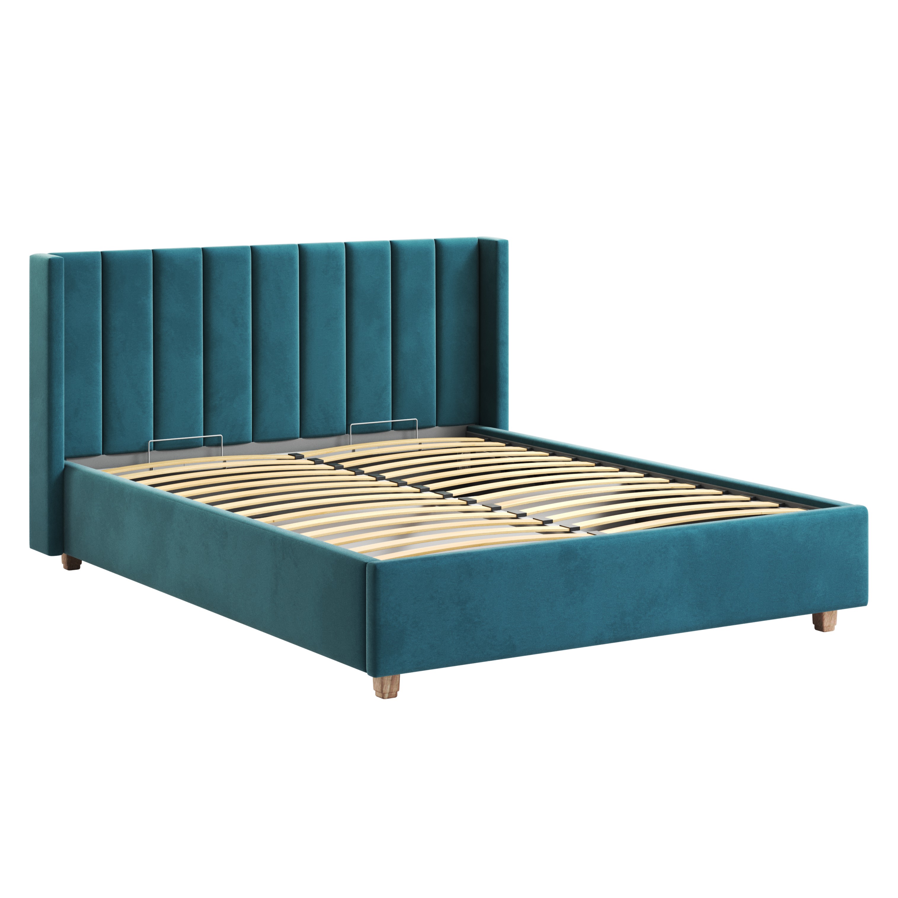 Кровать выполнена в синем велюре (Denim), который придает ей стильный и современный вид. Обивка из искусственного велюра приятна на ощупь и легко чистится. Каркас кровати изготовлен из ЛДСП, что гарантирует прочность и долговечность изделия.